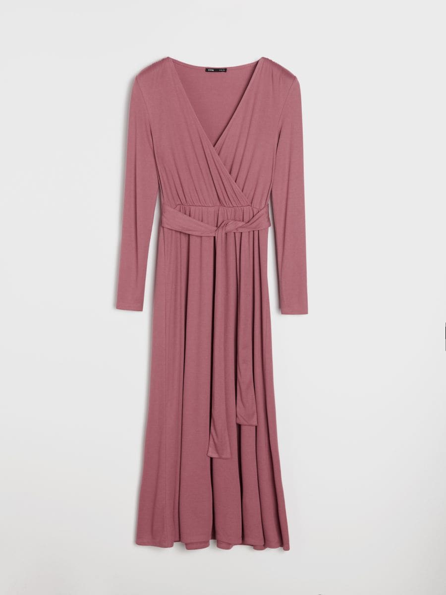 Midi haljina sa dekorativnim vezanjem i dodatkom viskoze