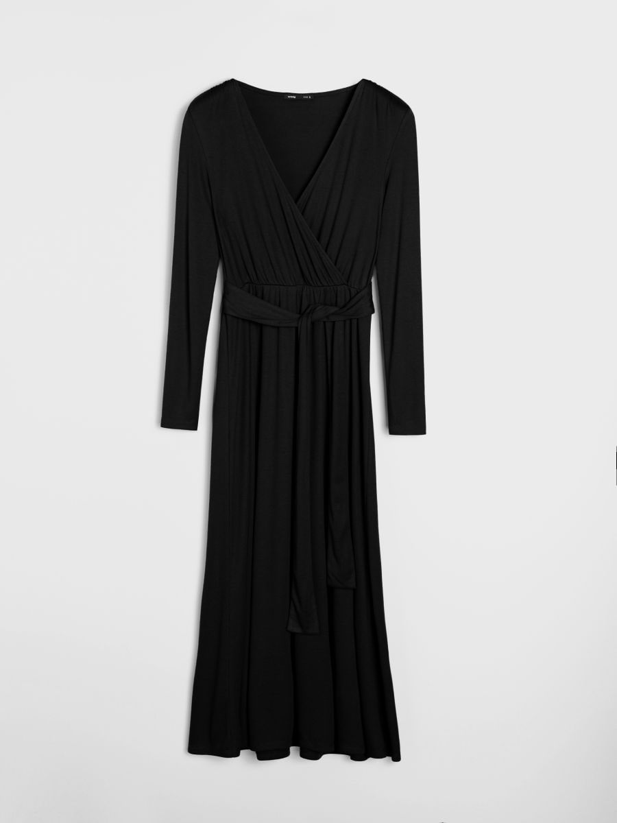 Midi haljina sa dekorativnim vezanjem i dodatkom viskoze