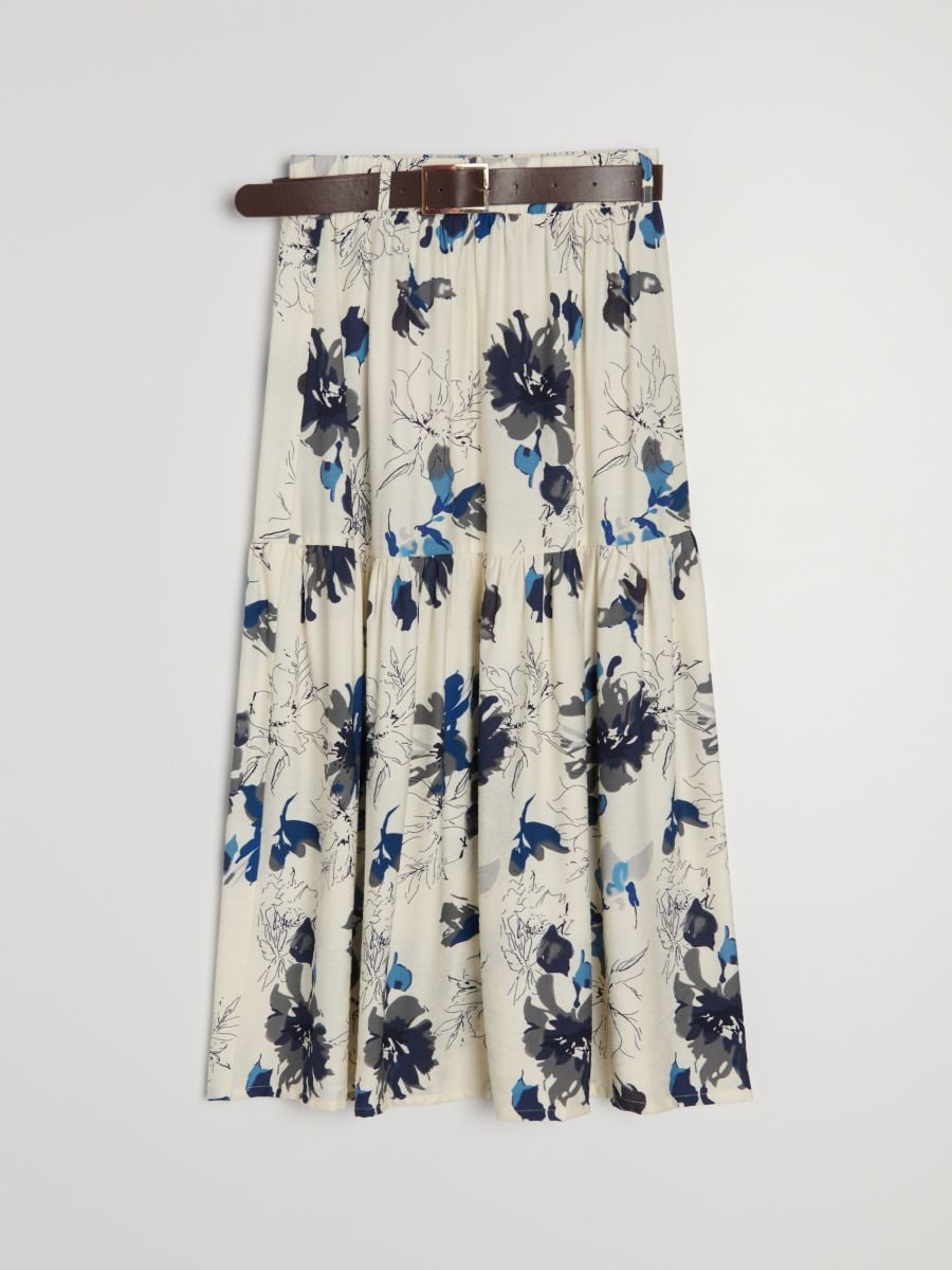 Midi suknja od viskoze sa cvetnim dezenom i kaišem