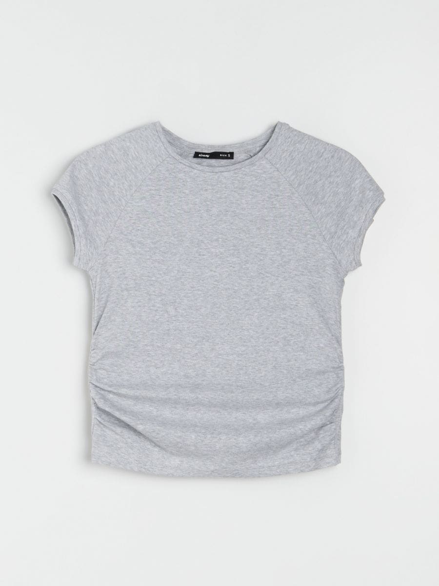 Pamučna bluza sa kratkim rukavima i naborima sa strane