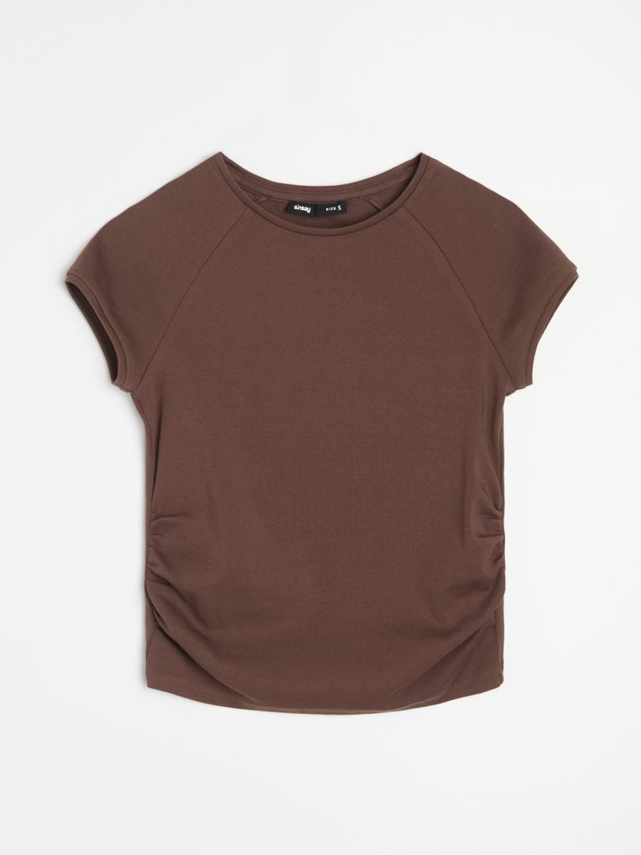 Pamučna bluza sa kratkim rukavima i naborima sa strane