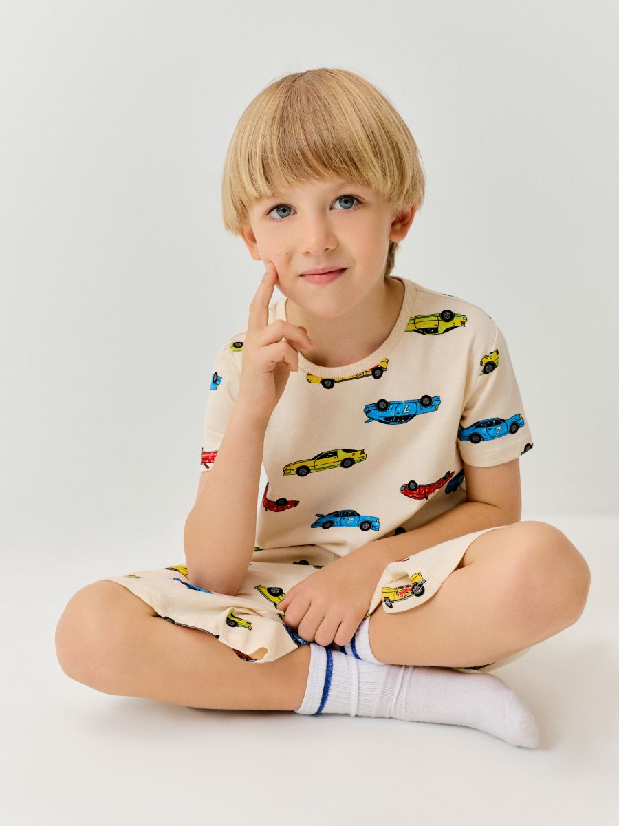 Pamučna dvodelna pidžama sa printom automobila