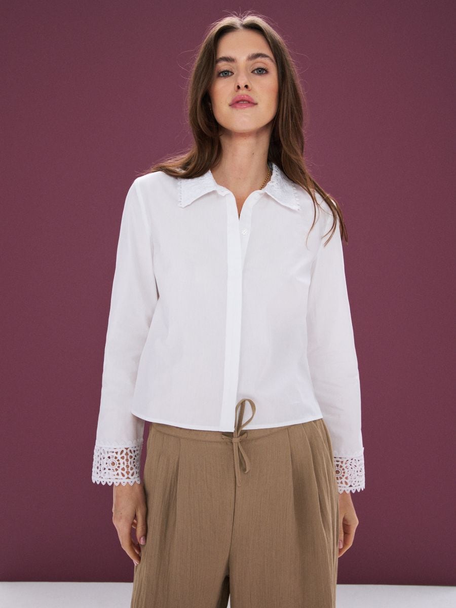 Pamučna košulja regular fit sa čipkastim detaljima