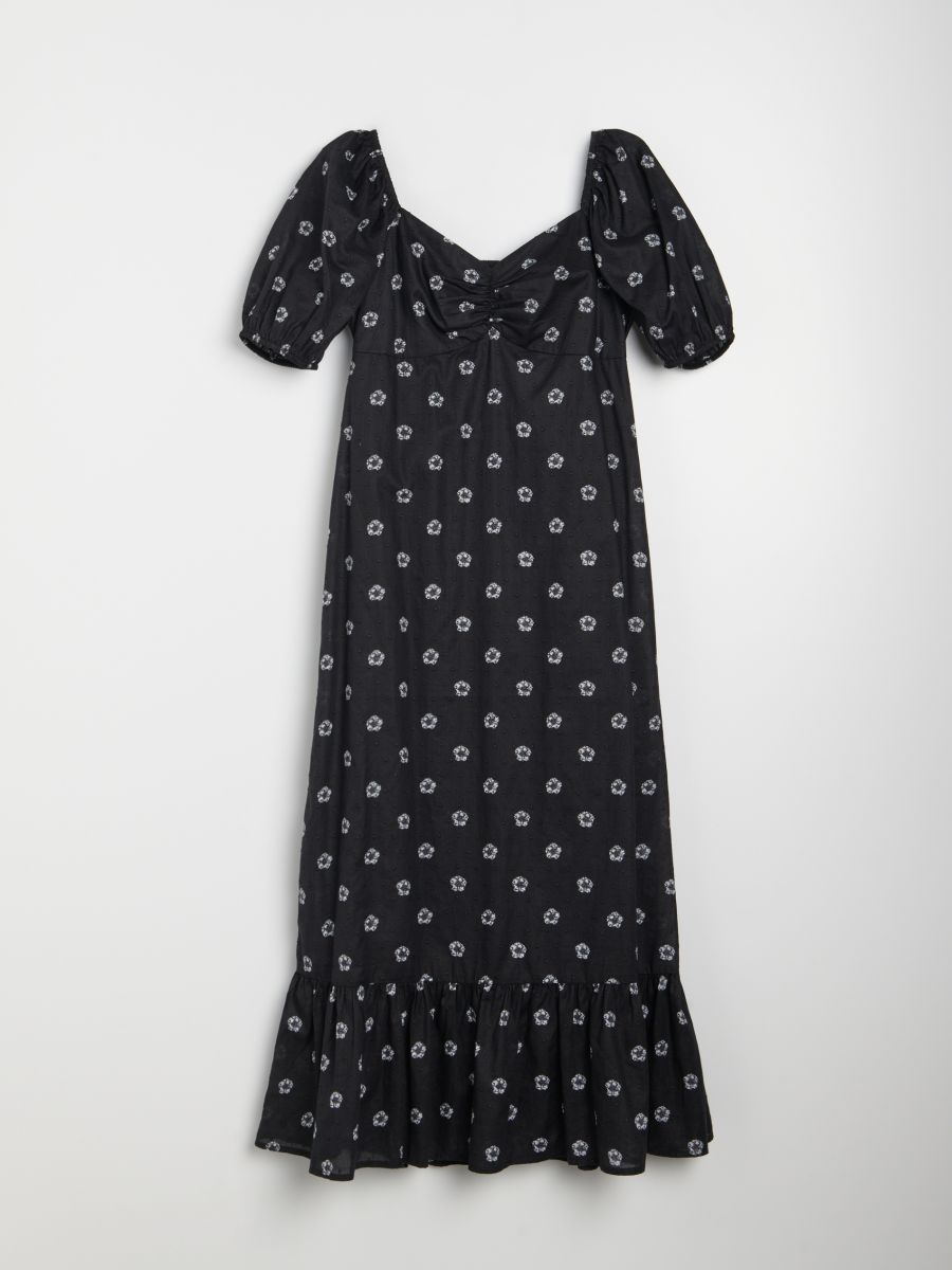 Pamučna midi haljina sa puf rukavima sa cvetnim uzorkom