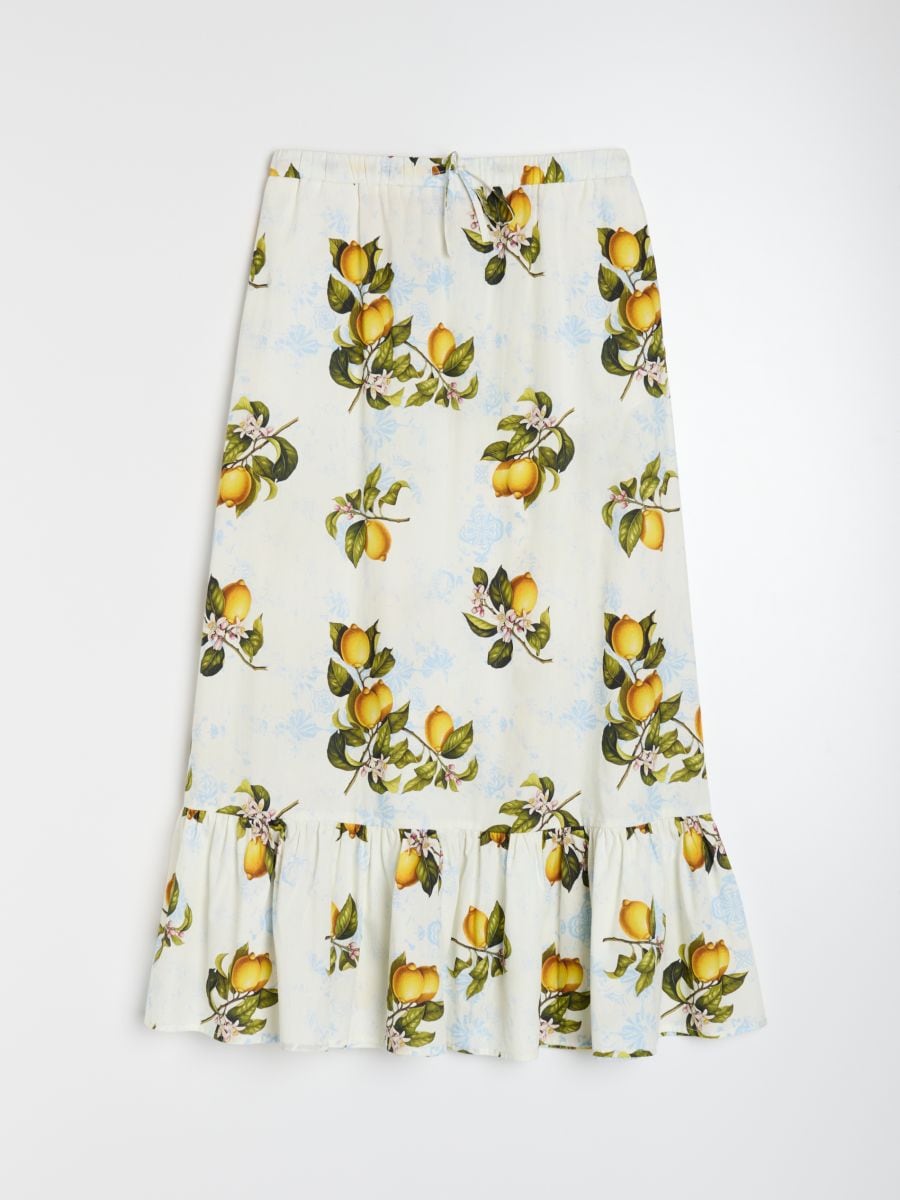 Pamučna midi suknja sa volanima sa uzorkom limuna