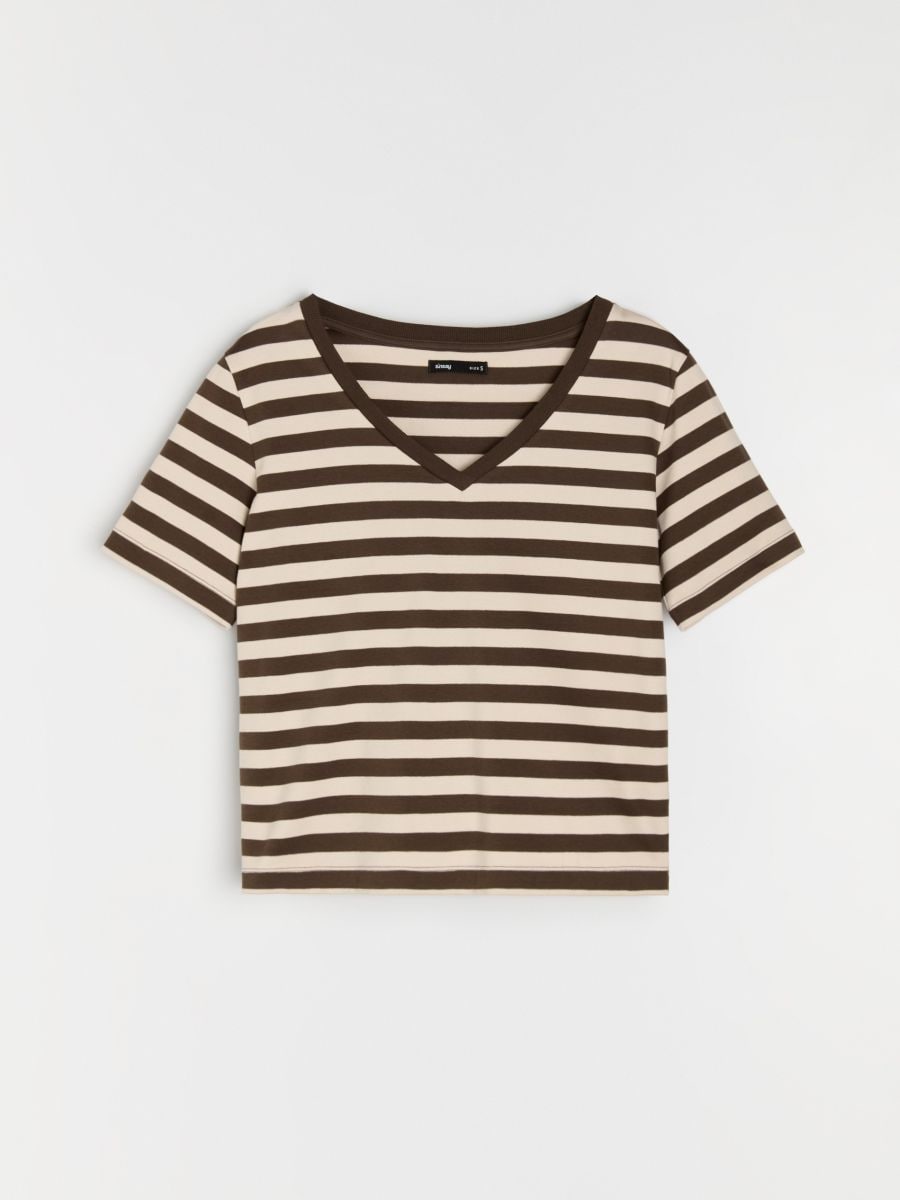 Pamučna prugasta majica sa V izrezom