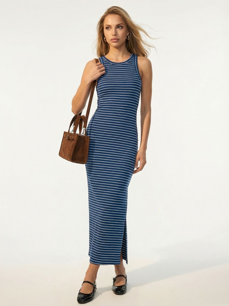 Pamučna rebrasta midi haljina bez rukava