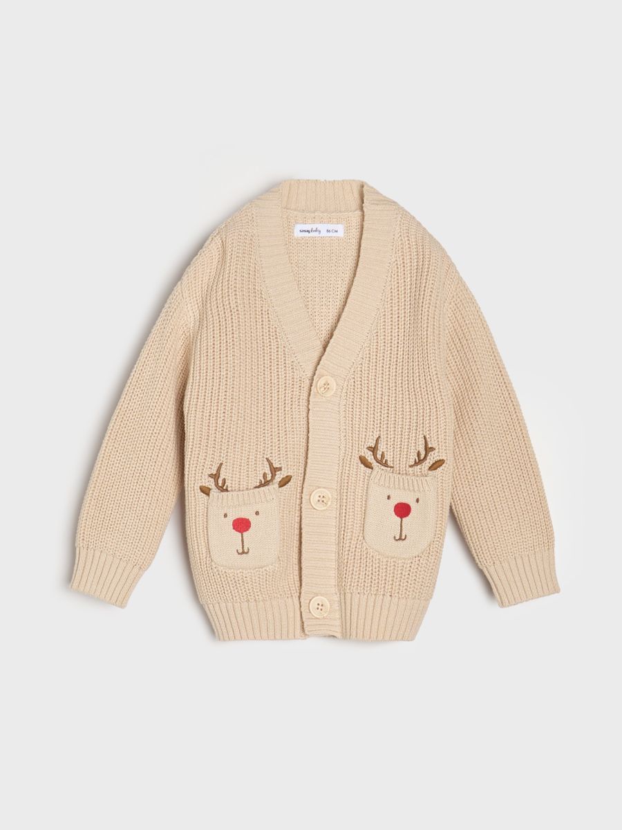 Praznični kardigan sa džepovima u obliku jelenčića