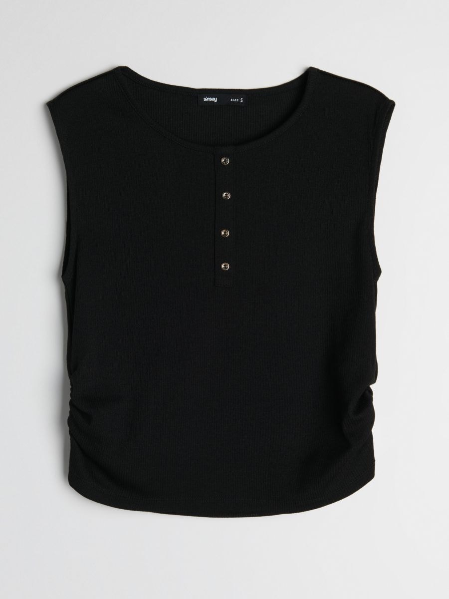 Rebrasta bluza bez rukava sa dugmadima sa dodatkom viskoze