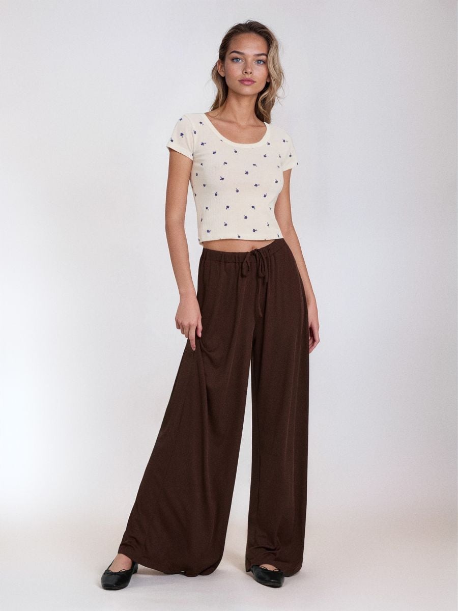 Rebraste wide leg pantalone sa elastičnim pojasom
