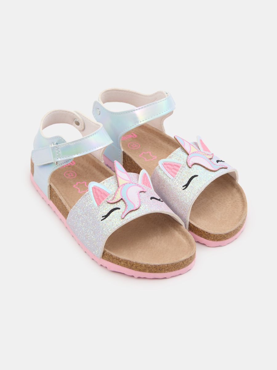Sandale sa šljokičastim efektom sa motivom jednoroga, sa kožnim uloškom na čičak