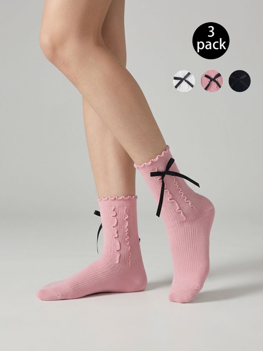 Set čarapa sa talasastim rubom i mašnicom 3 kom