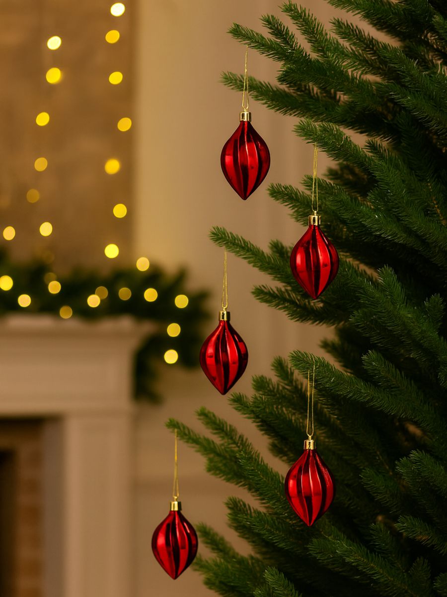 Sjajne božićne kuglice u obliku suze, set od 6 komada