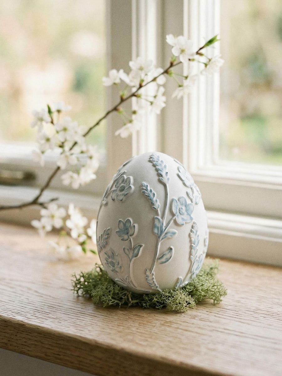 Stojeća vaskršnja dekoracija u obliku jajeta sa cvetnim motivom