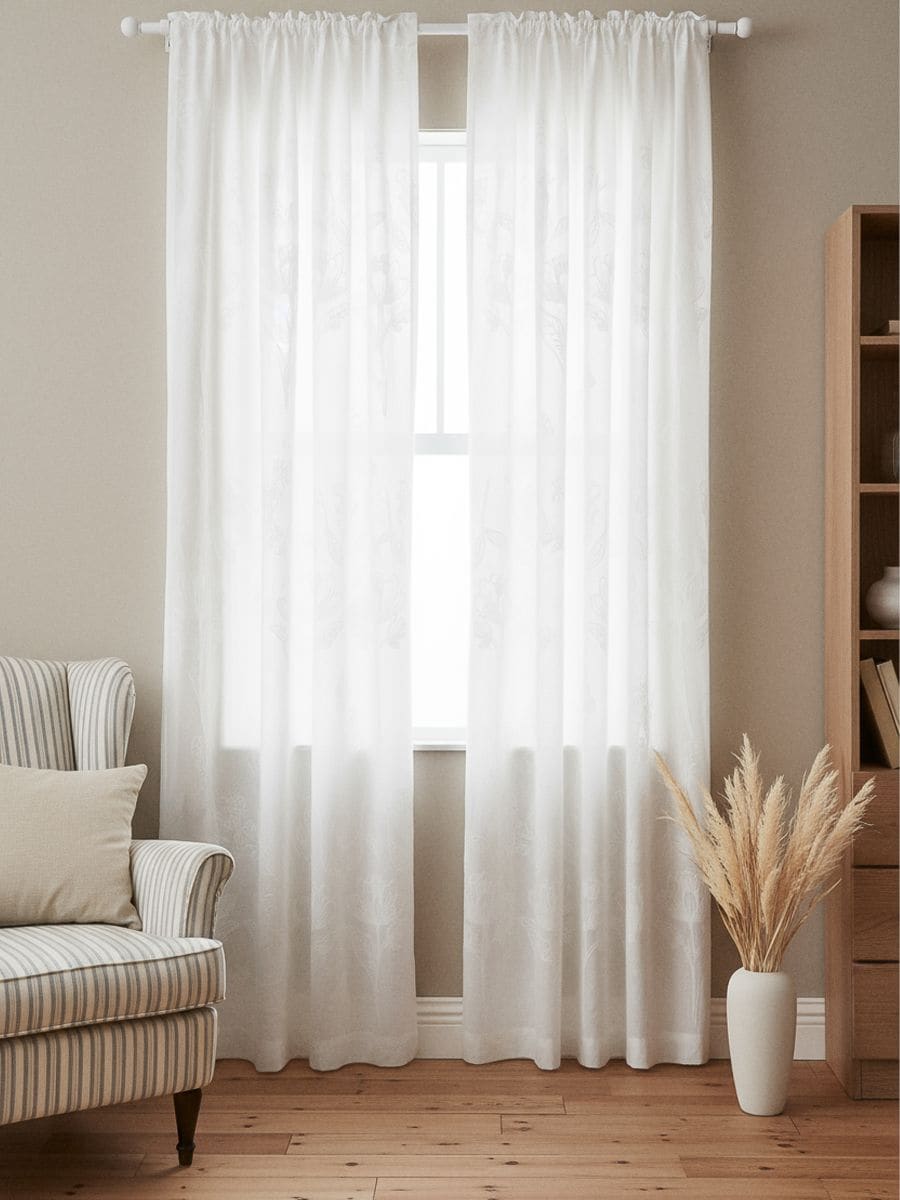 Teksturirana zavesa na traci s biljnim motivom
