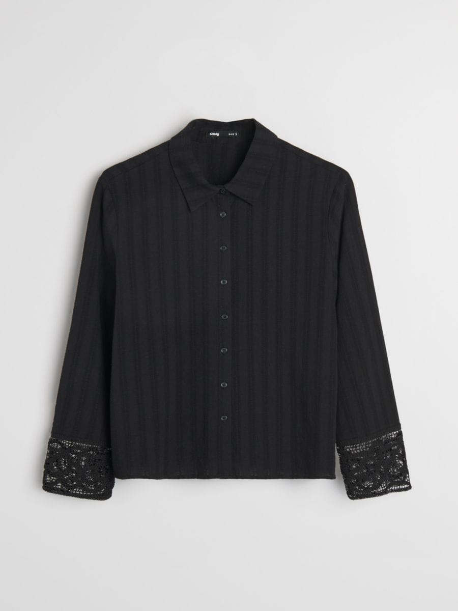 Teksturisana pamucna košulja sa čipkastim manžetama