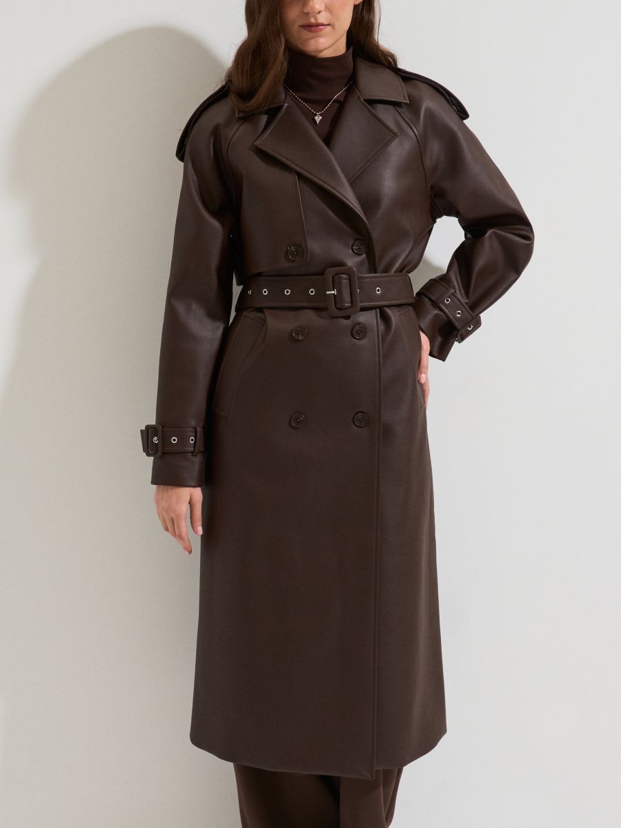 Trench kaput od imitacije kože sa pojasom
