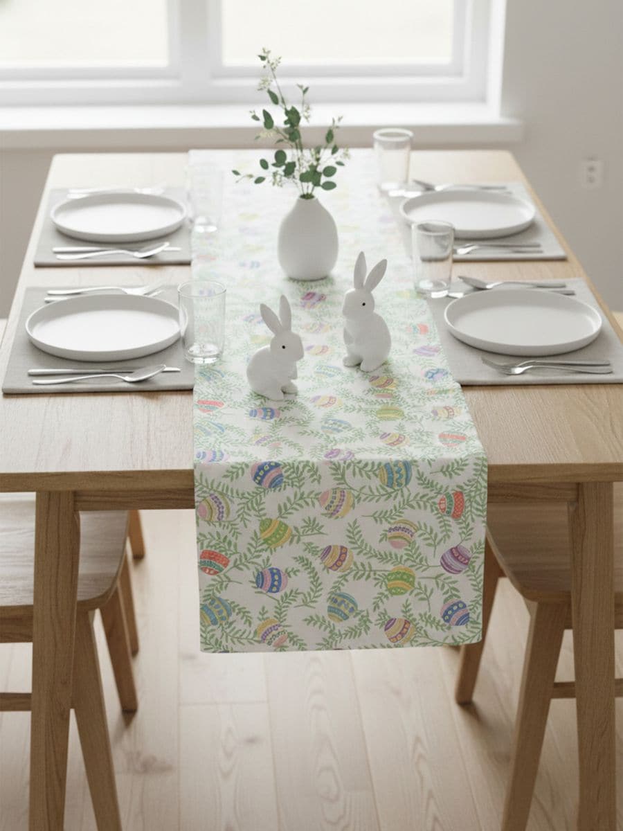 Uskršnji stoni runner sa motivom biljaka i jaja
