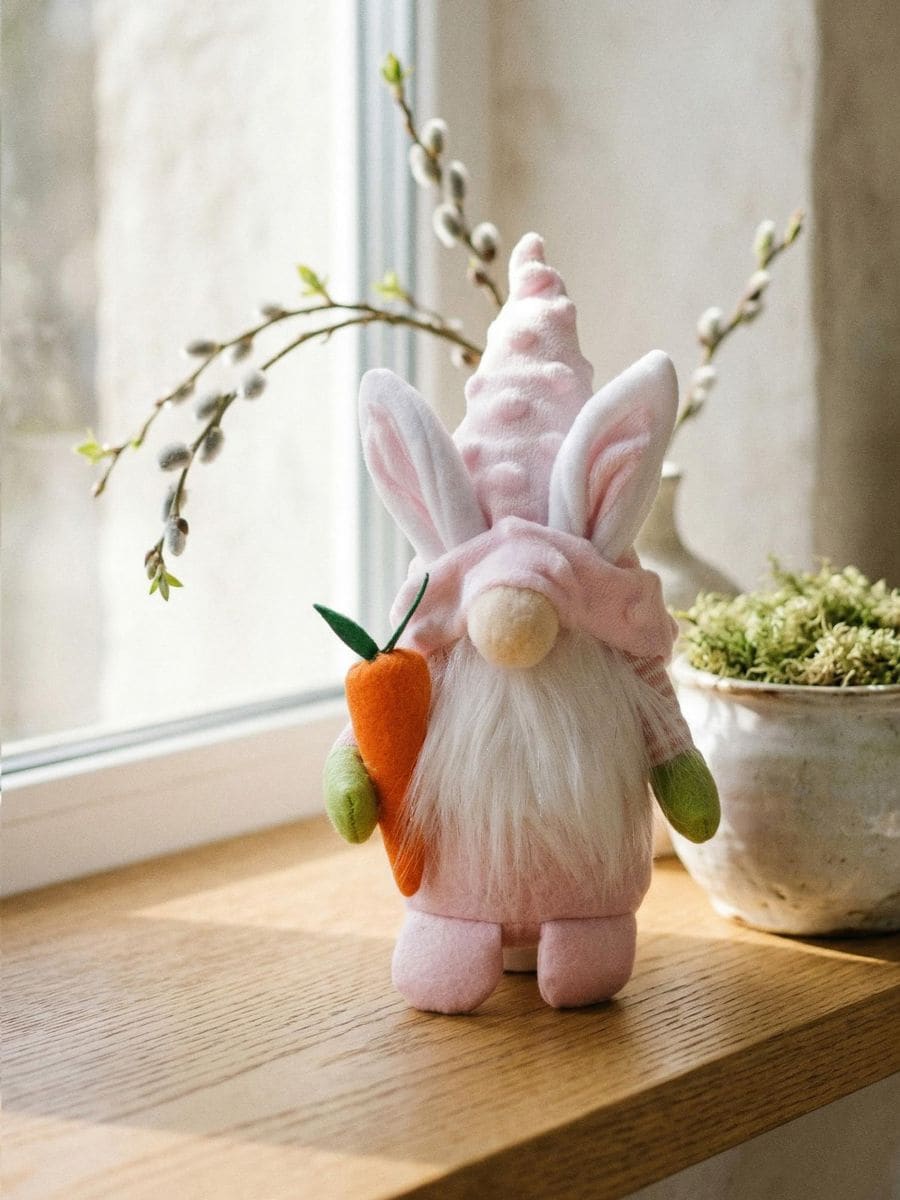 Vaskršnja dekoracija u obliku patuljka sa zečjim ušima i šargarepom