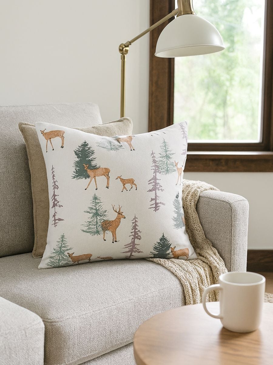 Zimski dekorativni jastuk sa motivom irvasa i drveća