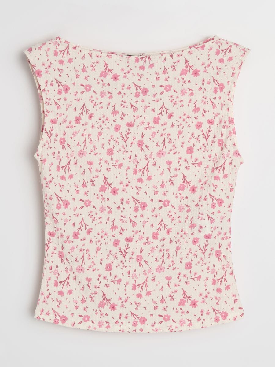 Bluza brez rokavov z cvetličnim potiskom