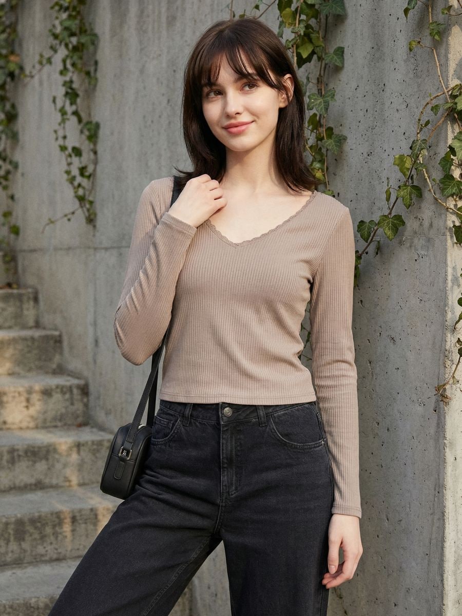 Bluza z dolgimi rokavi in čipko pri izrezu