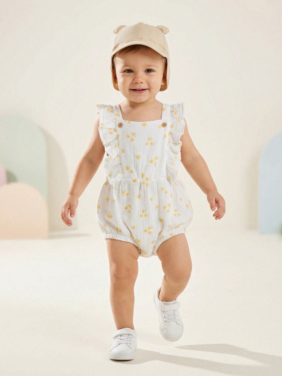 Bodi z elastiko na hlačnicah iz strukturirane tkanine s cvetličnim vzorcem