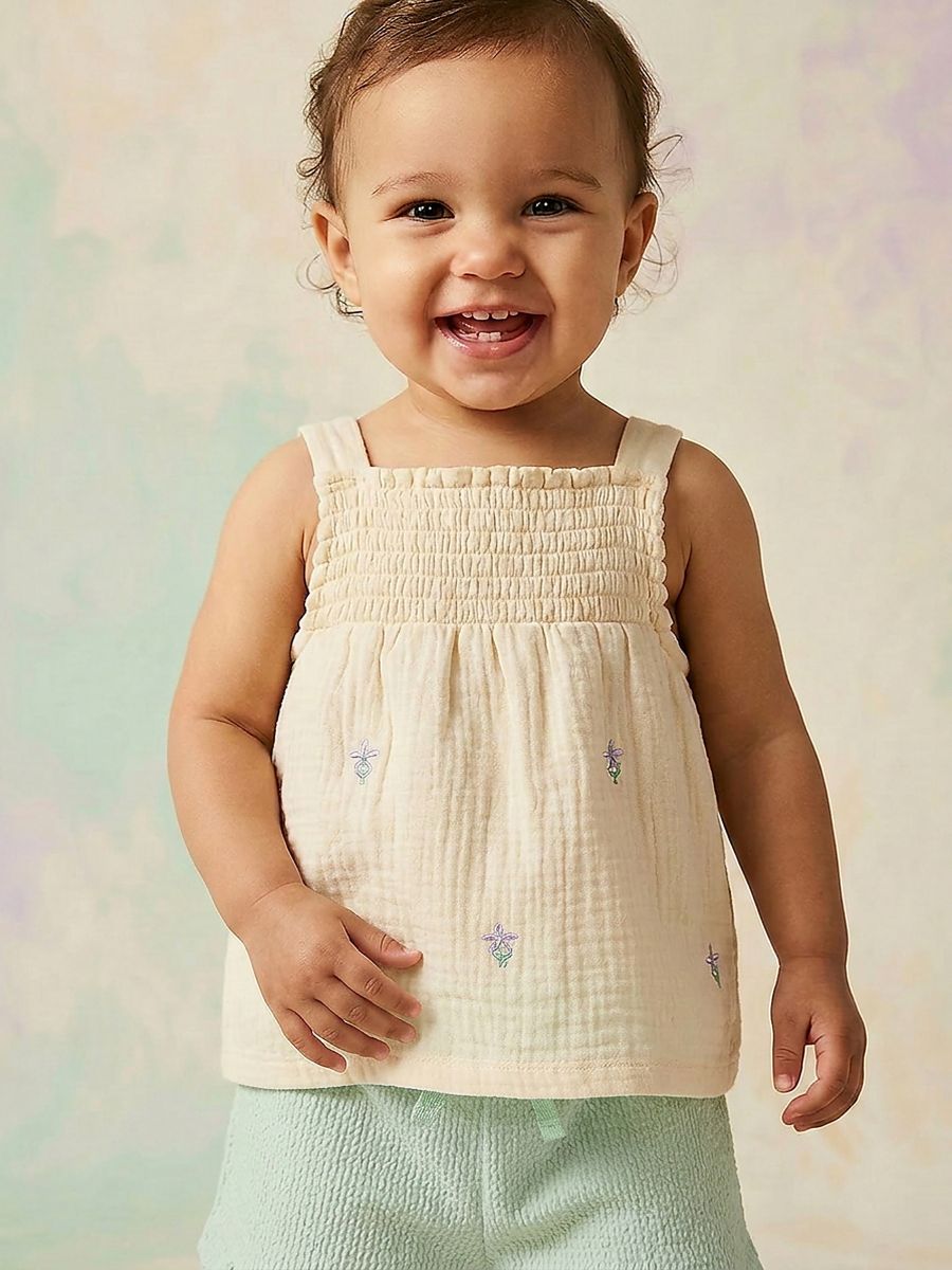 Bombažna bluza z naramnicami in vezenim cvetličnim motivom