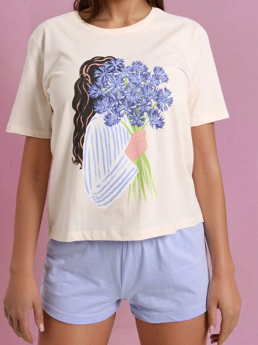 Bombažna dvodelna pižama z tiskom