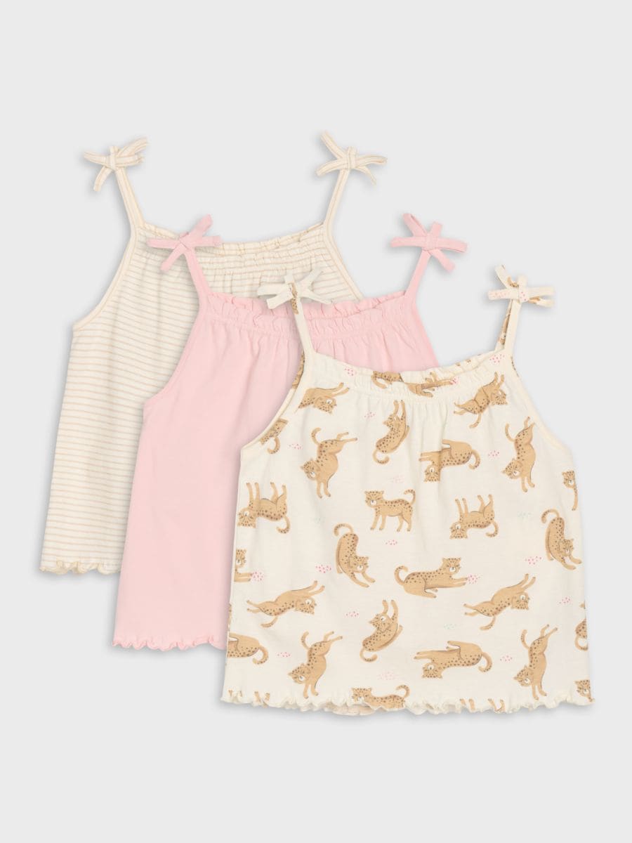 Bombažna majica brez rokavov z volančki in pentljami 3 pack