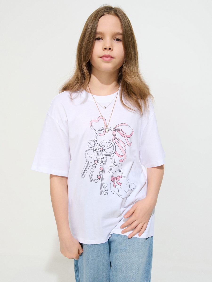 Bombažna majica s potiskom medvedka in ključev