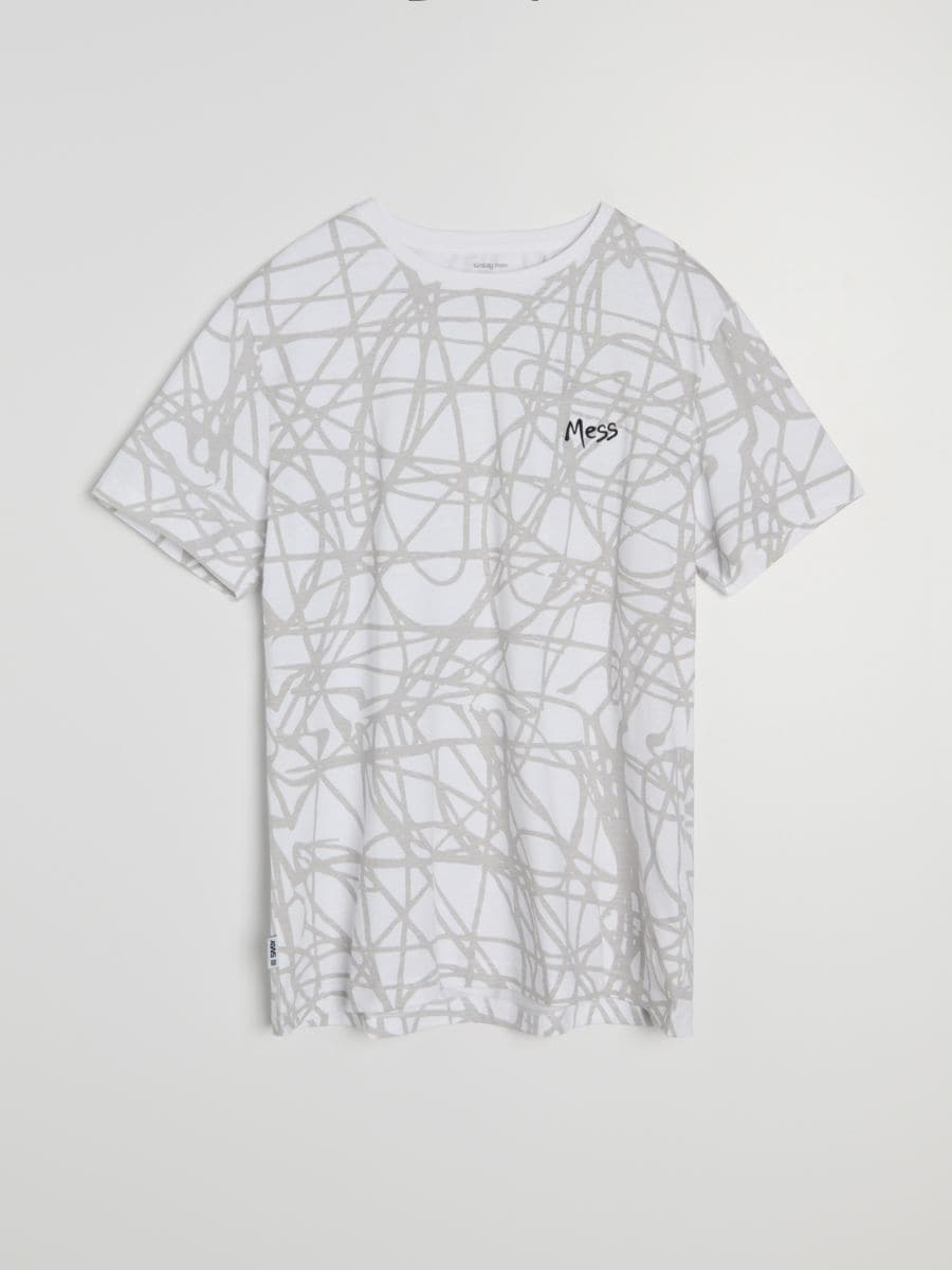 Bombažna majica z izvezenim napisom Mess
