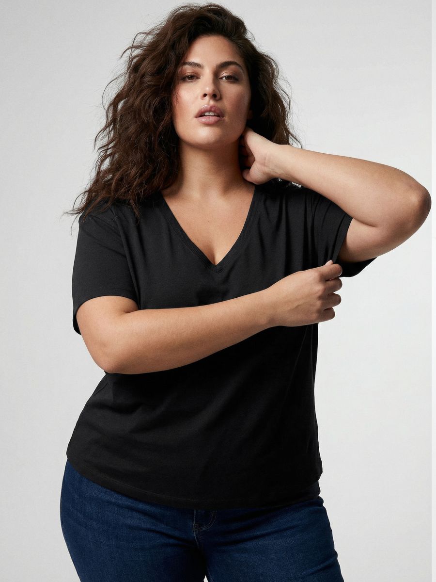 Bombažna majica z V-izrezom Plus Size