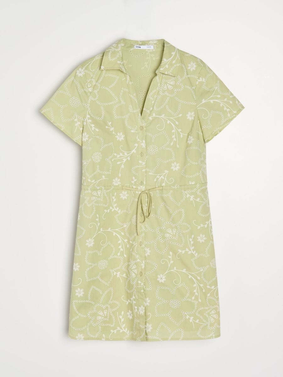 Bombažna mini srajčna obleka s cvetličnim vzorcem