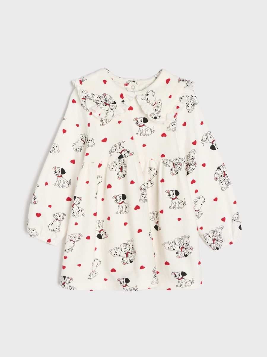 Bombažna obleka iz french terry tkanine z ovratnikom in volančkom 101 Dalmatians