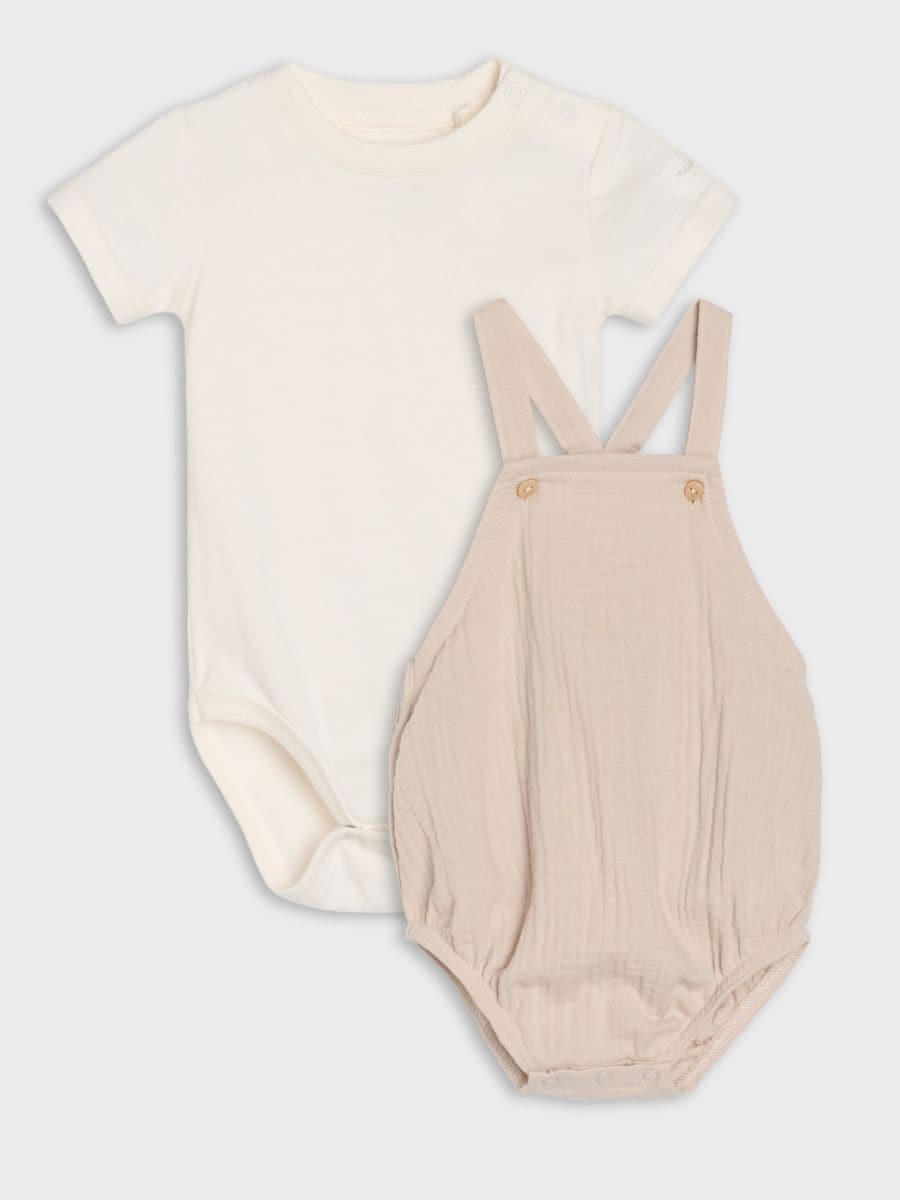 Bombažni komplet: bodi in hlače z naramnicami