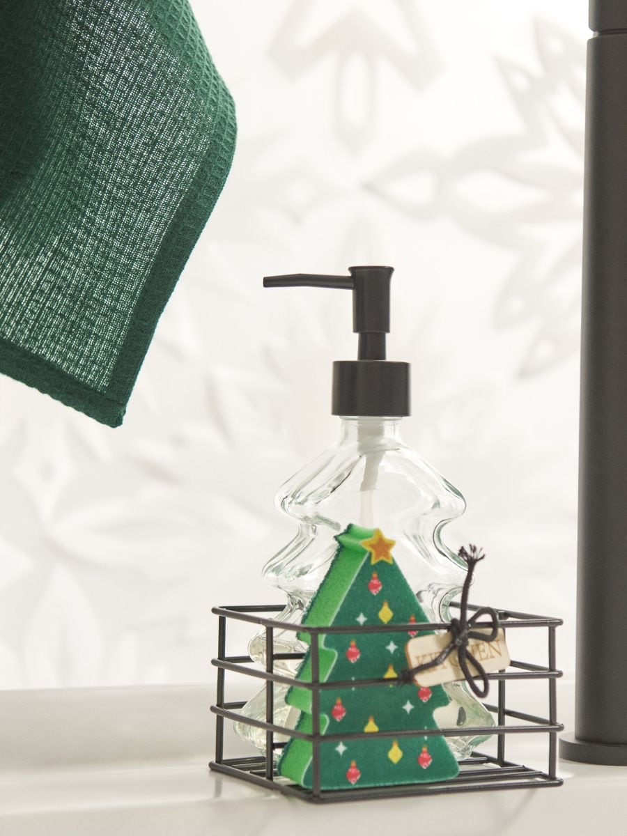 Božični dozator za pomivanje posode s gobico v obliki drevesa