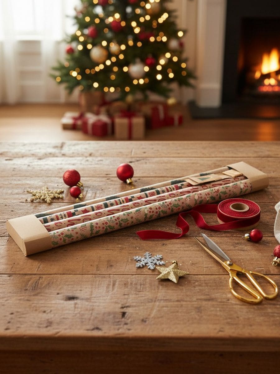 Božični komplet darilnega papirja z motivom dreves in allover vzorcem