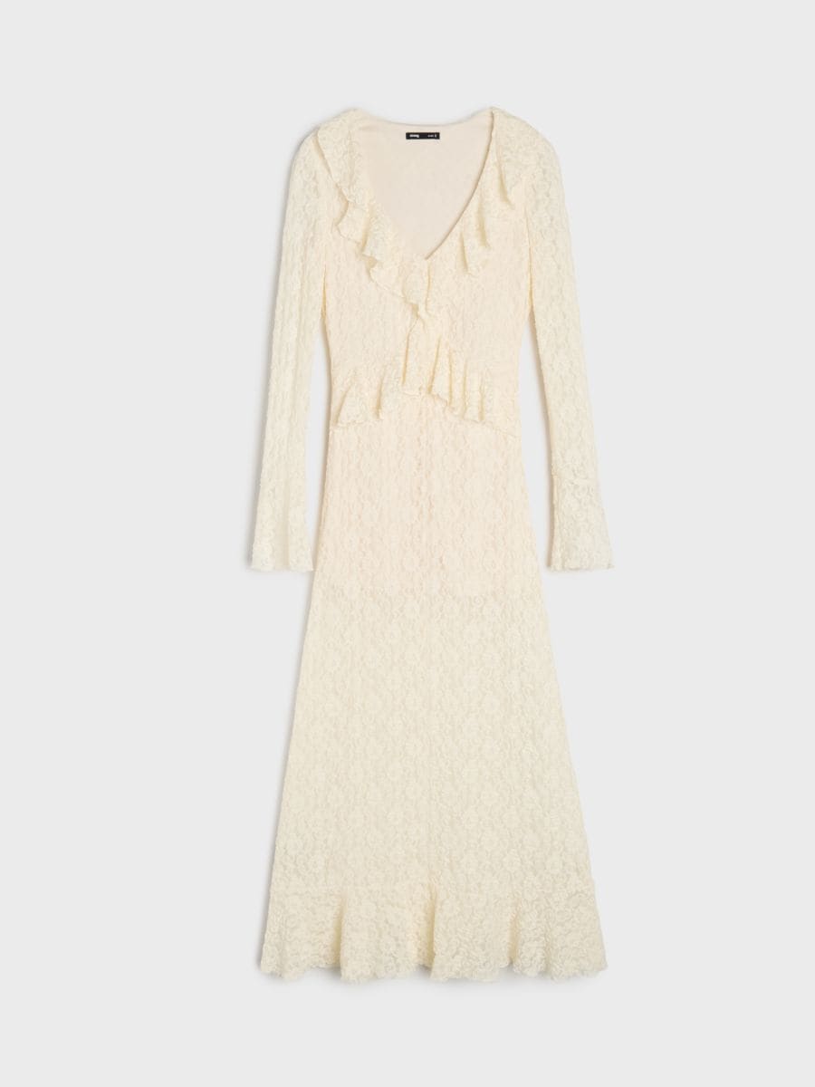 Čipkasta maxi obleka z volani