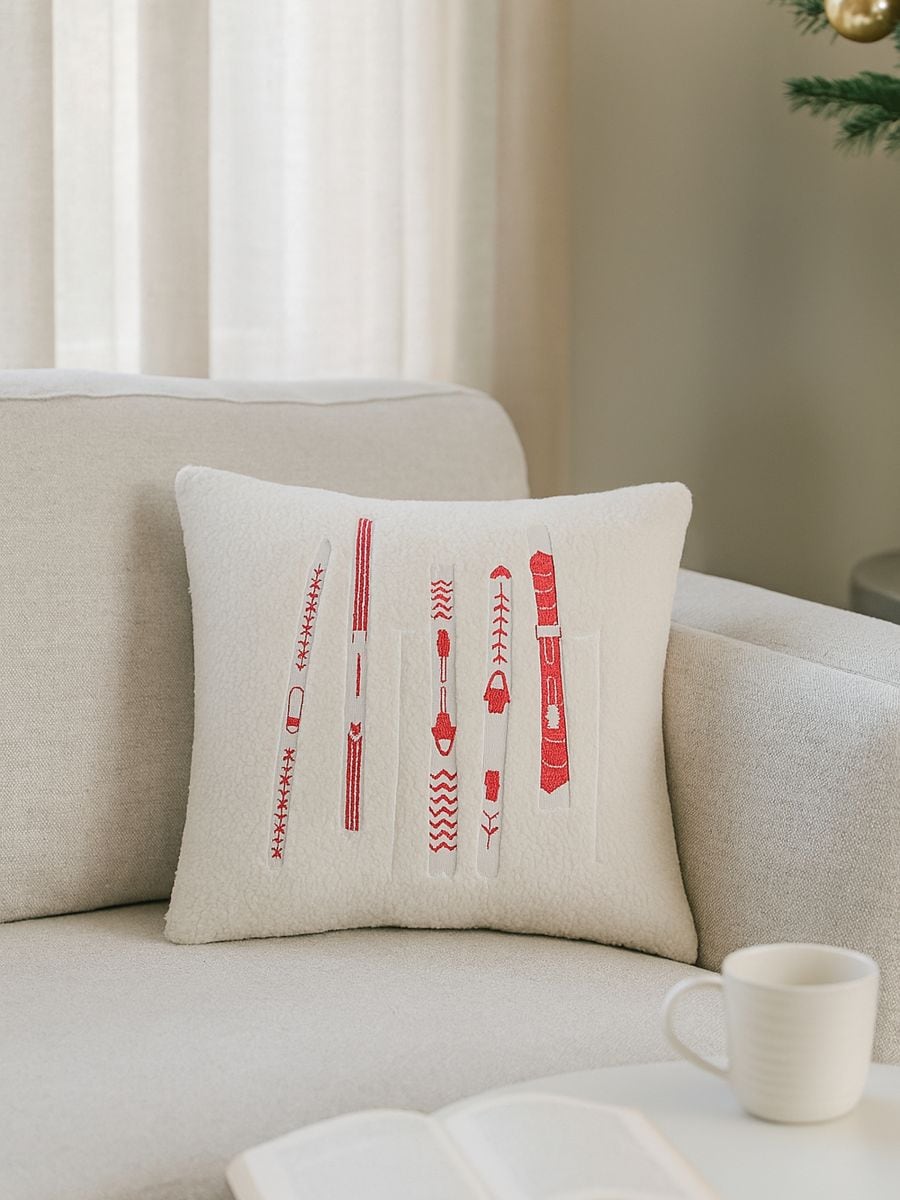 Dekorativna blazina z vezenjem smuči