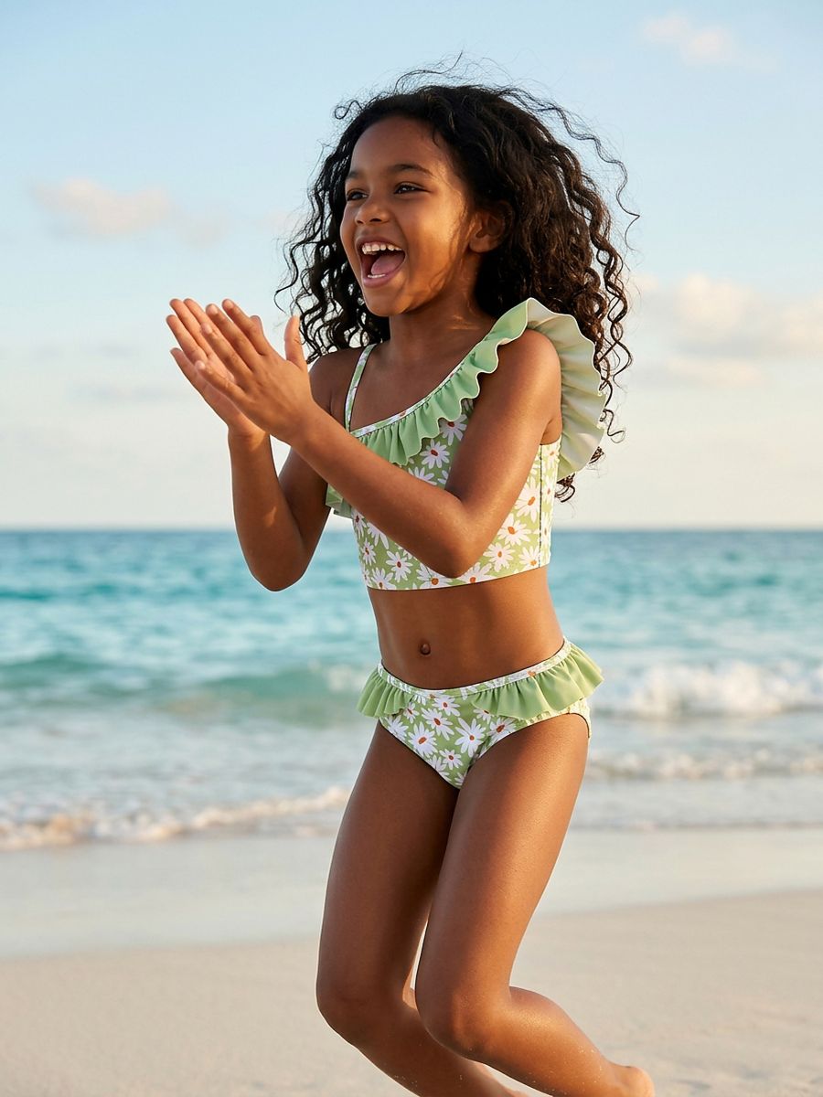 Dvodelne kopalke z volančki in cvetličnim motivom