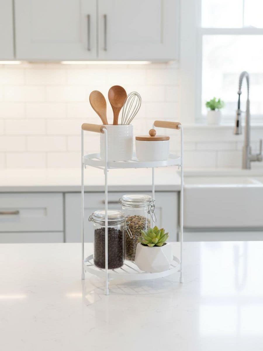 Dvonivojska kovinska polica z bambusovimi ročaji
