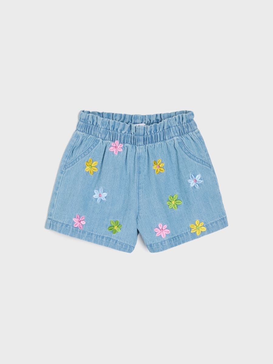 Džins kratke hlače z vezenimi cvetlicami