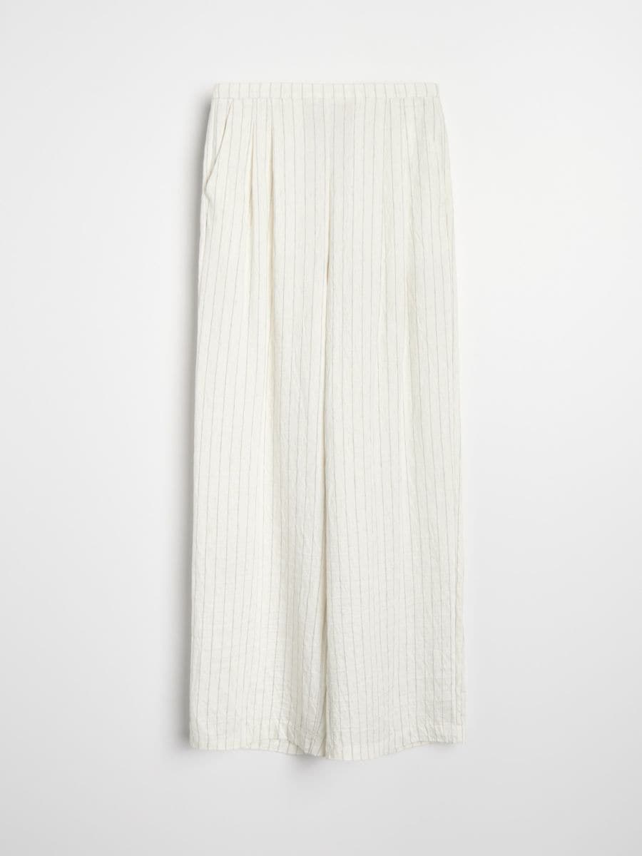 Hlače wide leg z navpičnimi črtami, z viskozo in dodatkom lanu