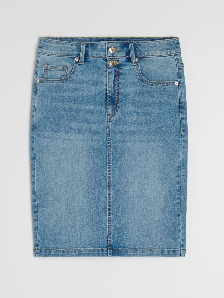 Jeans krilo do kolen z razporkom zadaj