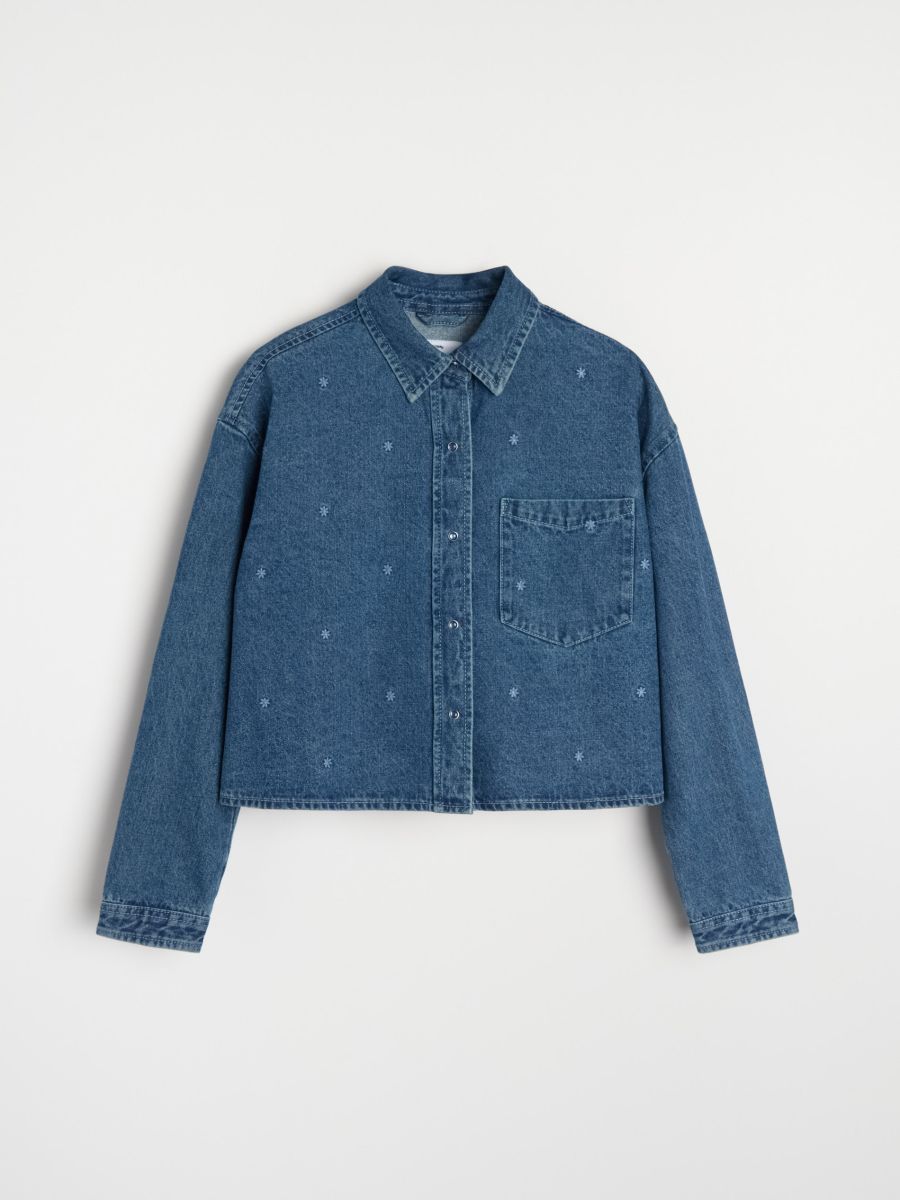 Jeans srajca z vezenimi cvetovi