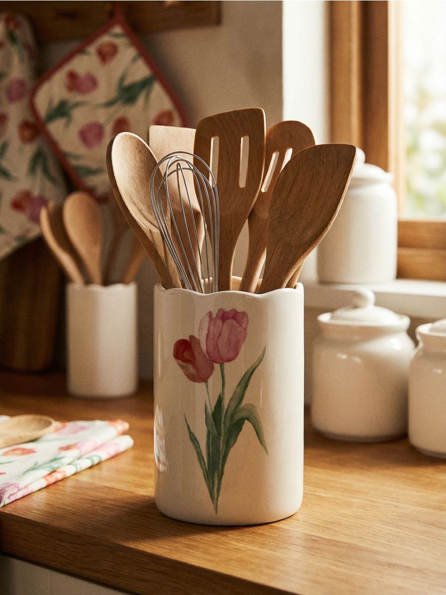 Keramična odtokna posoda za pribor z motivom tulipanov