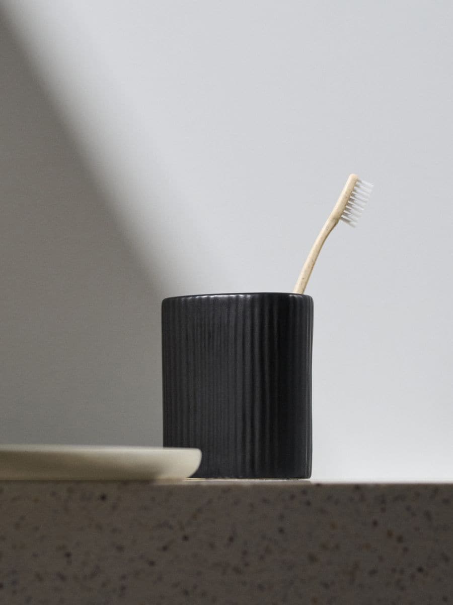 Keramični držalo za zobne ščetke z rebrasto strukturo