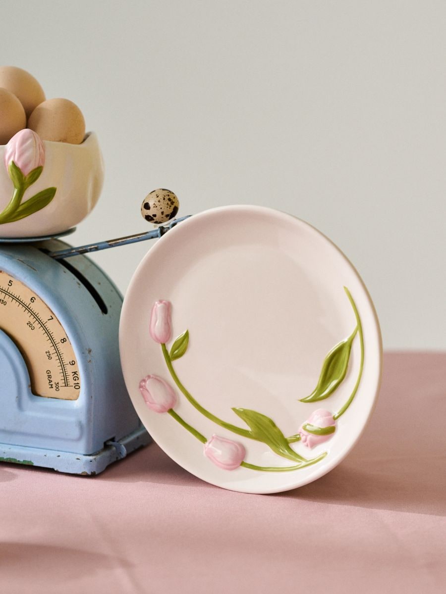 Keramični krožnik s tulipanovim motivom