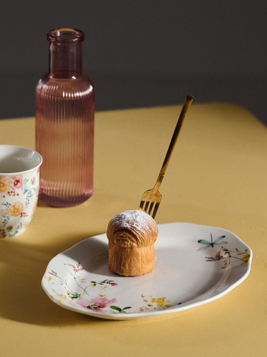 Keramični servirni pladenj s cvetličnim motivom